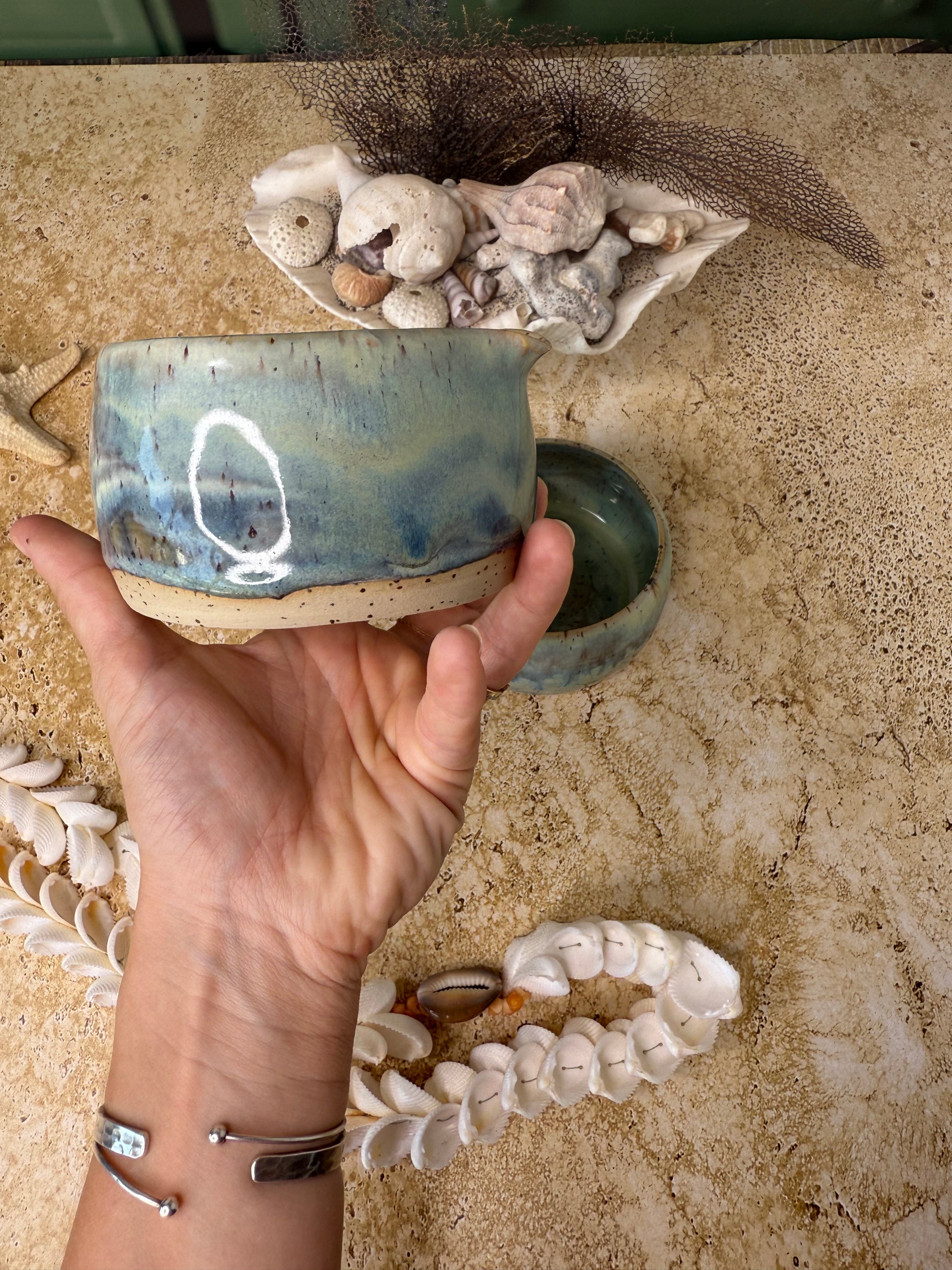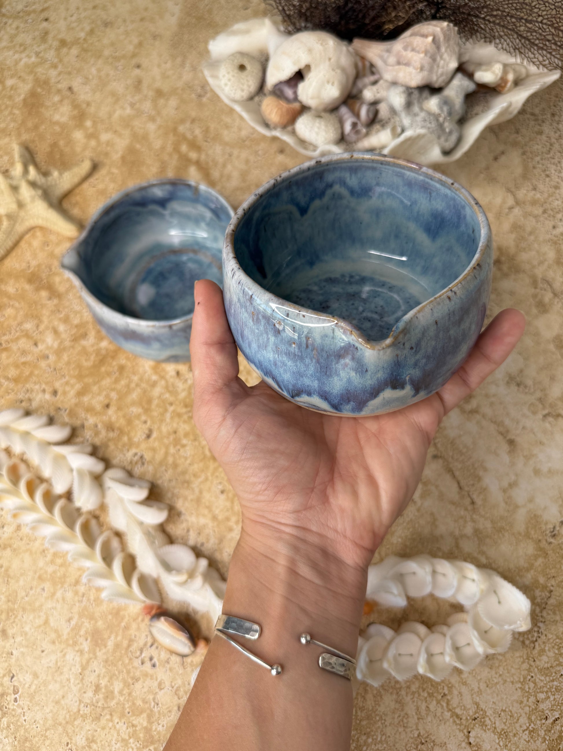 Découvrez notre bol à matcha, un incontournable pour les amateurs de thé. Fabriqué à la main en grès pyrité, il est orné d’un émail bleu doux aux nuances variées, inspiré par de l'océan . Parfaitement conçu pour la préparation du matcha, il allie beauté et fonctionnalité. Résistant et pratique, il passe au micro-ondes et au lave-vaisselle sans problème.