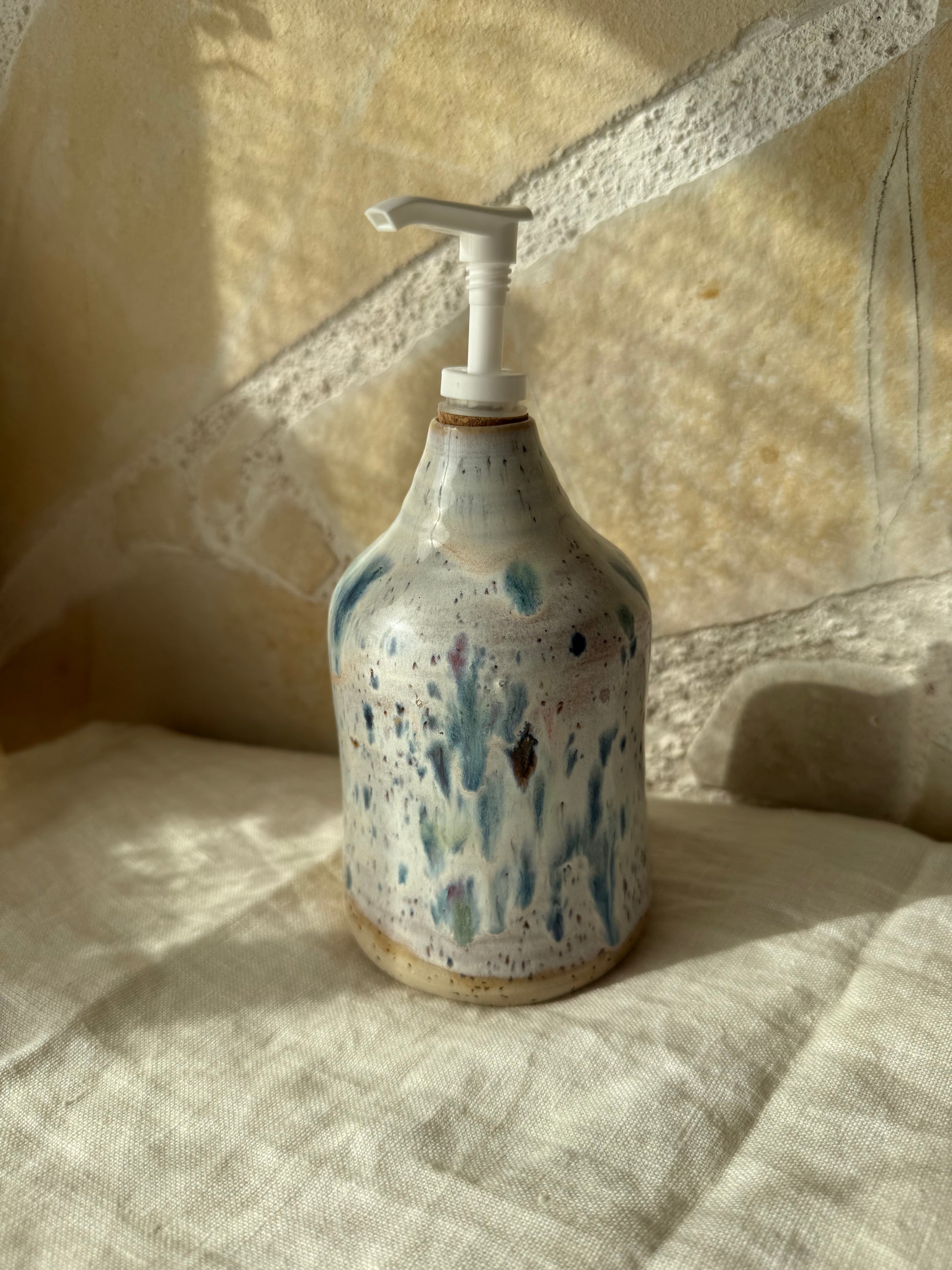 Découvrez notre distributeur de savon en grès, une pièce unique qui combine fonctionnalité et esthétique. Fabriqué à la main, chaque distributeur présente des variations subtiles de terre et d’émail, créant des nuances naturelles et distinctes.